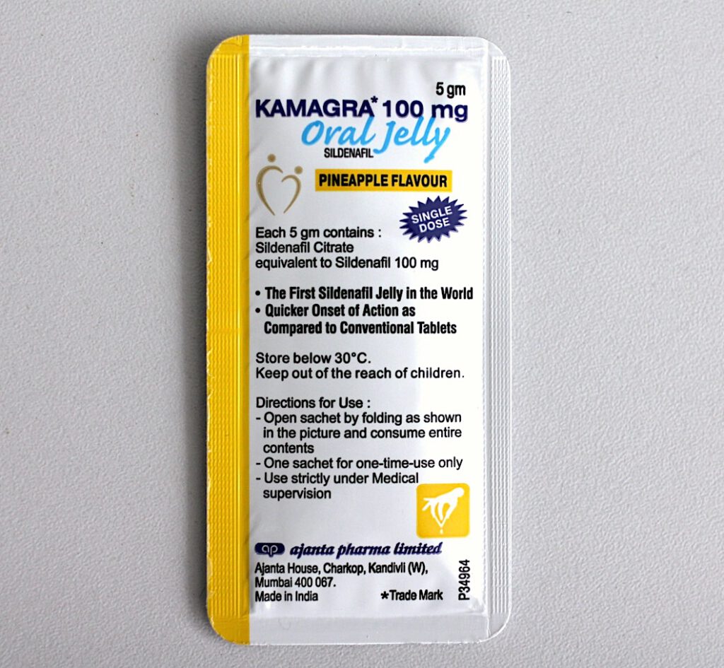 Kamagra Oral Jelly ist ein Generikum von Viagra und enthält den gleichen Wirkstoff – Sildenafil citrat, jedoch in Gelform. Es ist ein Mittel zur Behandlung von Erektionsstörungen (erektiler Dysfunktion, ED). Unterscheidet sich Kamagra Oral Jelly von herkömmlichem Viagra dadurch dass Darreichungsform ist Gel und nicht eine Tablette.
